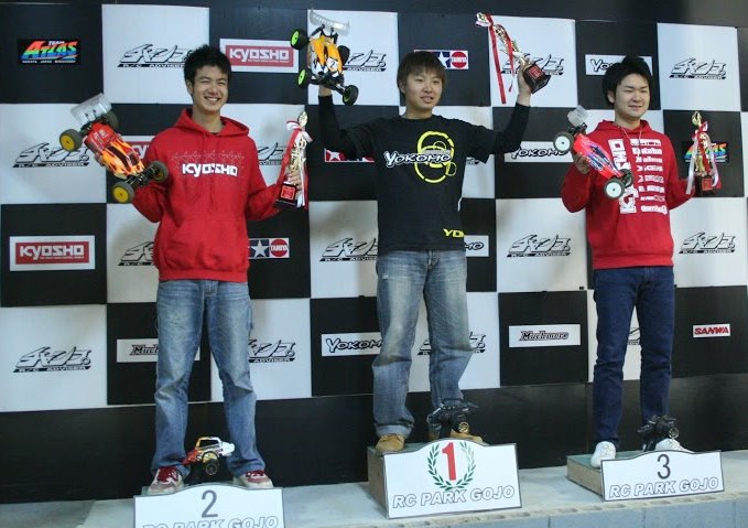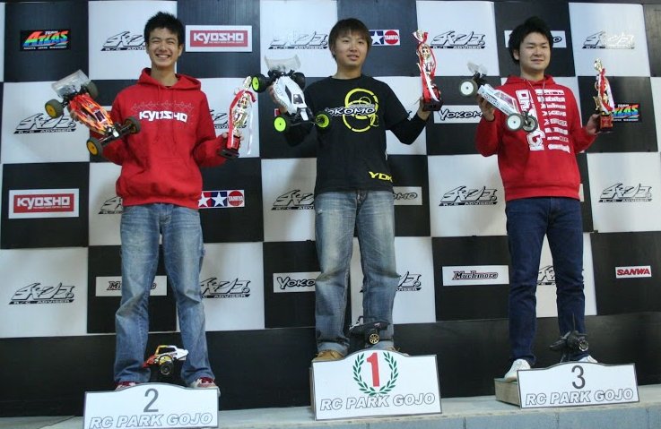 ちらほら見かけるようになりました、安定した部品供給で今後シェアを増やしそうな予感です。 レースは練習走行7分を2回、その後予選を5分を2回、そして決勝レースと言うフォーマット 2WDは、ヨコモ松倉は、会社からの指示でリヤモーターの市販マシンでレースに挑戦、 予選前の公式練習では一人18秒を切るタイムをあっさり出し 予選ではさらに0.2秒ラップを縮めるが、黙っていない京商勢の杉浦と梶原も17秒台と猛追するものの 松倉選手がTQ獲得。 決勝レースはGOJO独特のスタート方式のルマン式でマシンを横向けにしたスタート 1コーナーの混乱も少なくスムーズなスタート、序盤は松倉選手がリードするが、杉浦選手が 松倉選手の背後に何度も迫るるレース展開、お互いに早く走る区間が違うため レースを見物していたギャラリーを大いに盛り上げてくれました 後半、さらに集中力を高め12周目にはベストタイムを出し貫禄を見せつけ優勝。 4WDは、17周5:15.218で松倉選手がTQ、2番手は1.1秒送れで杉浦選手 この2名様は予選17周とお見事! 決勝レースでは4WDを得意とする秋元選手がこの2人に絡む凄まじい展開が数周続く この間ギャラリーは大騒ぎになりましたが、やはりワールドランクの頭脳と冷静な彼の走りは圧巻 |